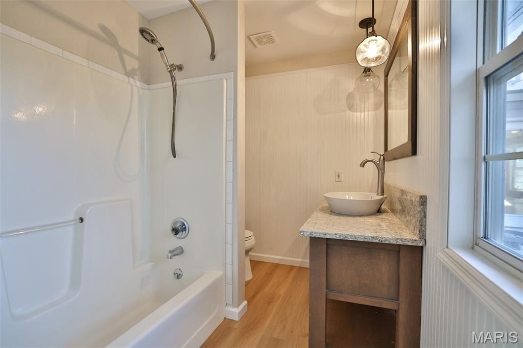Beautifully renovated 4-bedroom, 3-bathroom home in the heart of Mascoutah. Located within walking distance of the park and all the fun summer activities held there, you'll love the convenience of never having to worry about parking. This home features two primary suites-one on the main floor and one upstairs for added privacy. Enjoy the ease of main-floor laundry, plus great outdoor living spaces including a screened-in porch, deck for gatherings, and a fenced yard. A shed with electricity provides extra storage and hobby space. Please note: The fireplace has not been used by the seller and will not be guaranteed to be functional. A new roof will be installed on the original home before closing